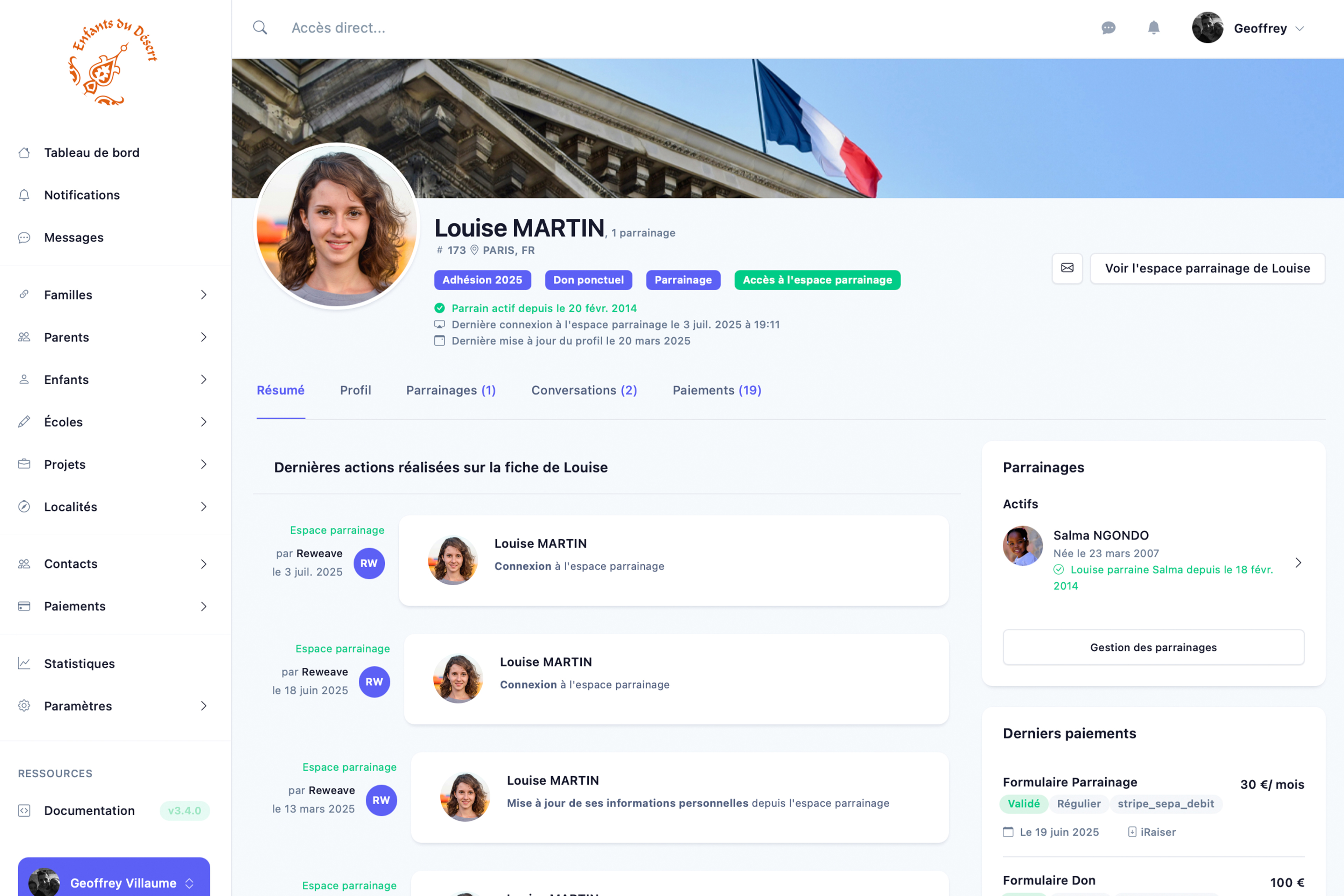 Photos, messages, nouvelles étapes : chaque ajout valorise le parrainage et montre concrètement l’impact du don. Une façon simple de nourrir la relation et de renforcer l’engagement.